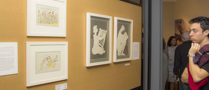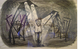 The exhibition presents the immigrants diverse creative activities, and their social life in the detention camps; their creative activities comprise printing, aquarelle paintings and drawings, cartoons, textiles, and decorative objects made from assorted materials. In addition, newspaper clippings, photographs and interviews depict the fabric of life in the camps that involved cultural life, theatrical performances, sport competitions, social events and study groups.