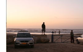 אלעד, המתמחה בצילום הרים ונופים ירוקים, בחר לצלם בחוף הים של הרצליה, נוף הזר עבורו. הצילומים, שהתבצעו כולם בשטח חוף מצומצם בן 100 מ"ר בהרצליה, משקפים את תהליך הגילוי וההתקרבות של הצלם לחוף עצמו ולים בכלל. אופי הצילומים הופכך את חלקם כמעט למופשטים. התנועה הפנימית בהם, הקיפאון של הזמן – כל אלה משווים לפעילות אנושית פשוטה ויומיומית את הצביון המיתולוגי והסמלי שהים נושא אתו.