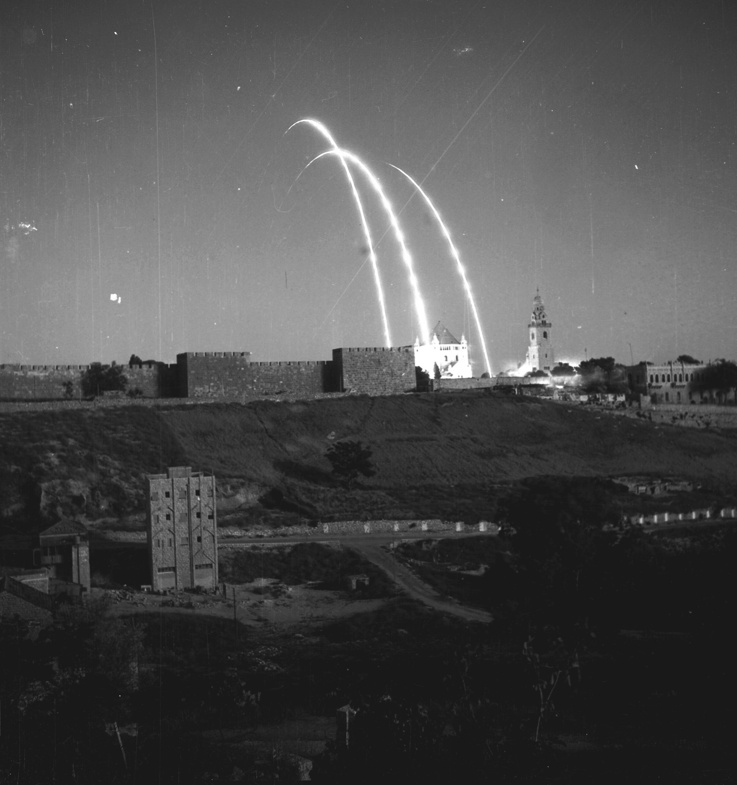 שני תצלומים אחרים ראויים להתבוננות נוספת. בכל אחד מהם שורה עורפית של צועדים. האחד בקיבוץ נאות מרדכי – ילדים וילדות עירומים לחלוטין הולכים, מקפצים בשמחה (אולי בדרך למקלחת?). בתצלום השני – פלסטינים עולים במדרגות אל הר הבית, אלחרם אלשריף, כשידיהם על ראשיהם. בראון ידע לזהות רגעים היסטוריים. לפעמים היו אלה רגעים של תיעוד מקומי עכשווי, שלא יחזרו עוד, כמו המקלחות המשותפות בקיבוץ. ולעומת זאת, רגע המנציח את כיבוש ירושלים, 1967: פלסטינים כנועים מטפסים במדרגות אל אחד האתרים החשובים באסלאם. ייתכן מאוד שבראון קיווה שמחזות כאלה לא יישנו עוד. אבל כשם שהמראות האלה הפכו לחלק בלתי נפרד מחיינו, אי אפשר להתבונן בתמונה של בראון ממלחמת השחרור הפגזים הנותבים הנורים בלילה אל מעבר לחומות העיר העתיקה (1948) ולא להיזכר בתצלומי הטילים האיראנים מעל שמי הלילה של תל אביב.